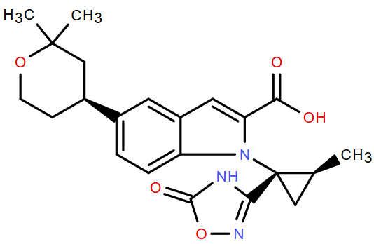 1H-Indole-2-carboxamide, 1-[(1S,2S)-1-(2,5-dihydro-5-oxo-1,2,4-oxadiazol-3-yl)-2-methylcyclopropyl]-N-methyl-N-phenyl-5-[(4S)-tetrahydro-2,2-dimethyl-2H-pyran-4-yl]- Cas: 2212021-82-2